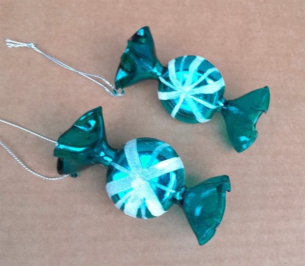 2 stk. Håndlavede glas karameller til pynt på trolle gren, juletræ på bordet m.m.