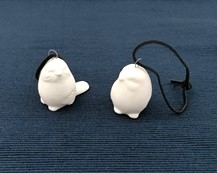 INFOKORT FOR : 2 stk. Fine keramik fugle med snor for ophængning. Højde på fuglene ca. 4 cm.