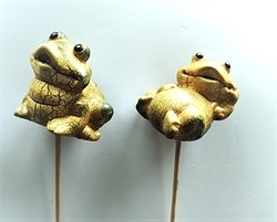 2 stk. keramik. Frø på træ pind.