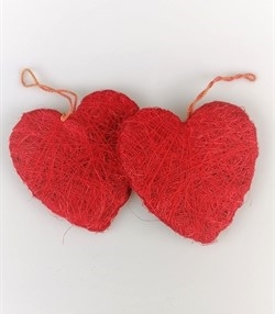 Røde sisal hjerter med snor. 10 cm. Pris 8,50 kr. 2 stk.