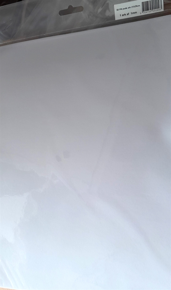 3 D Filt pude ark. 1 mm Klæber på begge sider. 21 x 29 cm. Helt ark du klipper selv størrelsen.