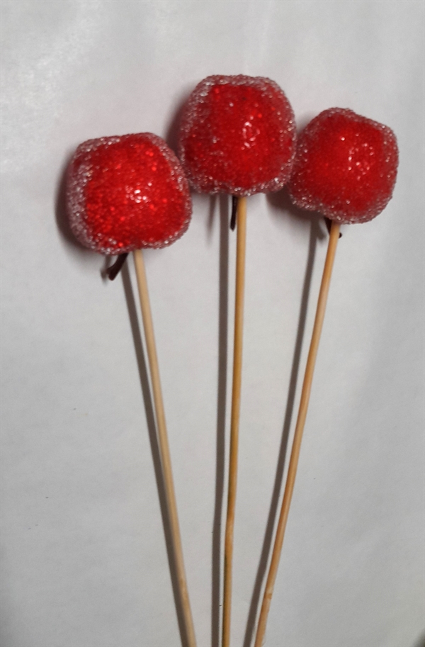 INFOKORT FOR : 3 stk. Sukker / Frost dekorations æbler på træ pind. Ca. 3 cm.