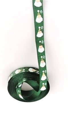 5 meter. Dekorations bånd. Grøn brede1 cm. Med guld tryk små julemænd.