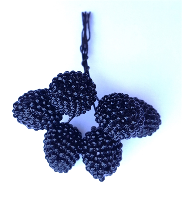 INFOKORT FOR : 6 stk. Flotte dekoration brombær. På tråd. Ø ca. 2,3 cm.