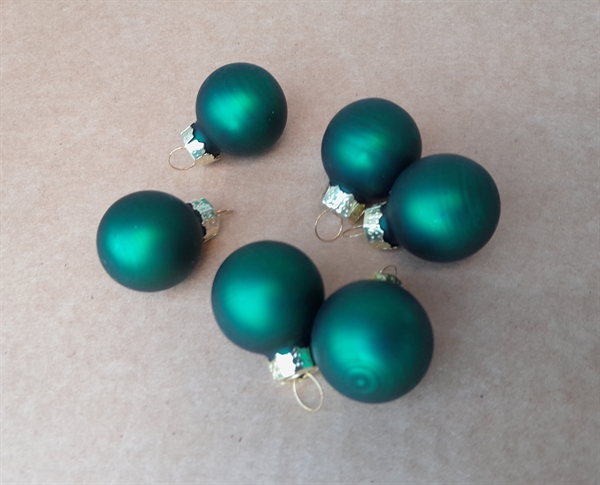 6 stk. Glas Kugler. Grøn. Mat. Ø ca. 2,5 cm.