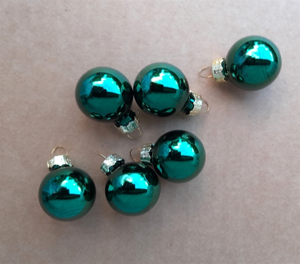 6 stk. Glas Kugler. Grøn. Blank. Ø ca. 2,5 cm.