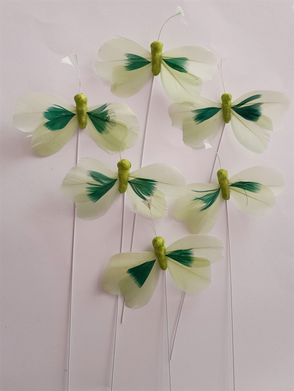 INFOKORT FOR : 6 stk. Sommerfugle på tråd. Vingefang ca.10 Grøn / sart grøn.
