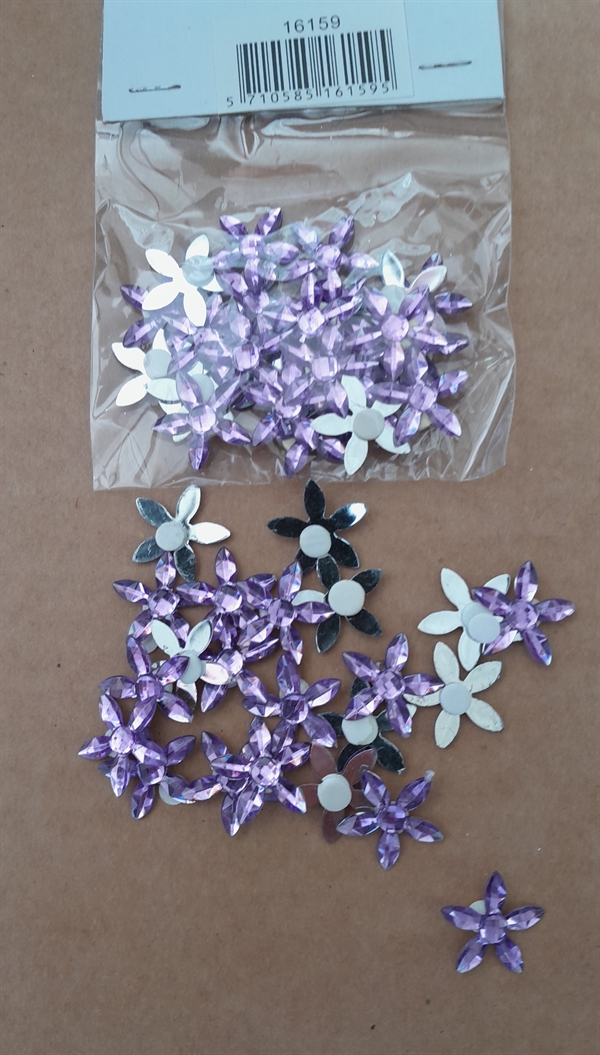12 stk. Lilla små blomster. Akryl.. Ø ca. 2 cm.