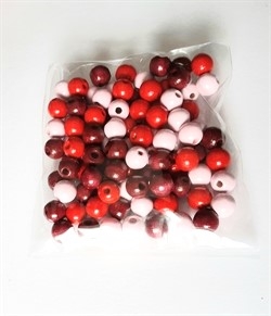 Fine Træperler i de viste farver ca. 85 stk. Ø 8 mm.