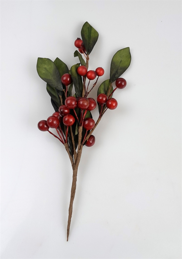 INFOKORT FOR : Kunstig kvist med røde bær. Brug den som fyld i dekorationer m.m.