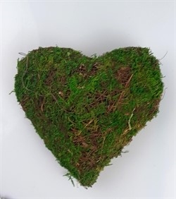 Ratan hjerte let buet med kunst mos til toppyntning. ca.20 cm. H ca. 6 cm.