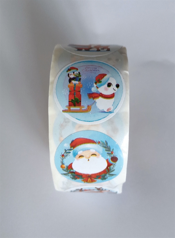 Rulle med klistermærker ca. 500 på en rulle. Jul. Ø ca. 2,4 cm.
