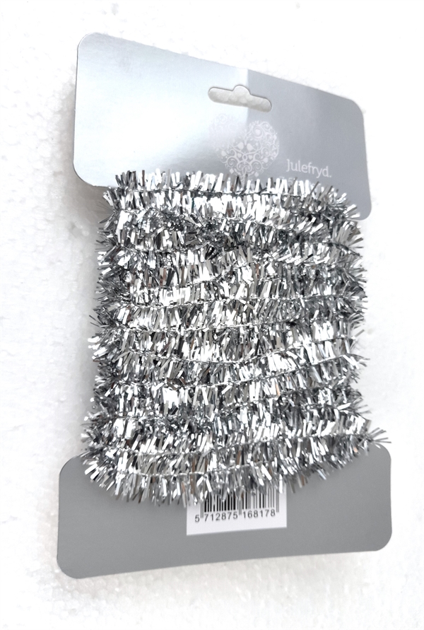 Sølv lametta ca. 7,5 meter B. ca. 1,5 cm.