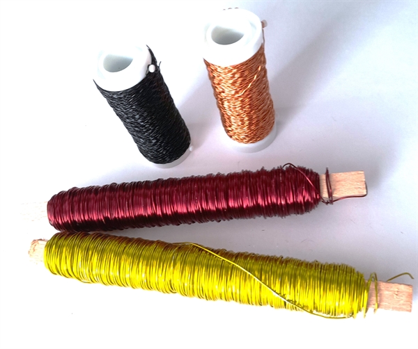 Vindselstråd og effekttråd i de viste farver. Lime, bordeux, sort og kobber.